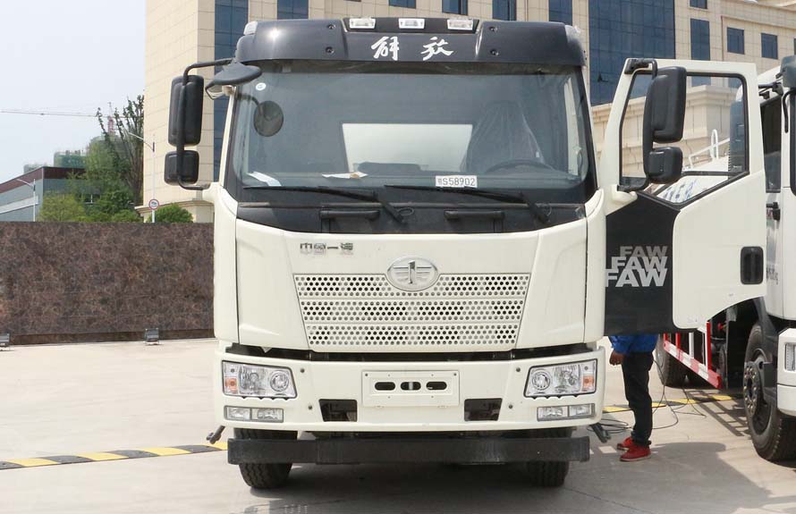 采用一汽解放J6底盘,白色排半可前翻驾驶室,大柴190马力国五发动机,6挡变速箱,轴距4500mm,9吨后桥,9.00R20原厂钢丝胎,原厂abs,驾驶员座椅为机械减震座椅,带方向助力,离合助力器,气刹制动,原厂空调。
